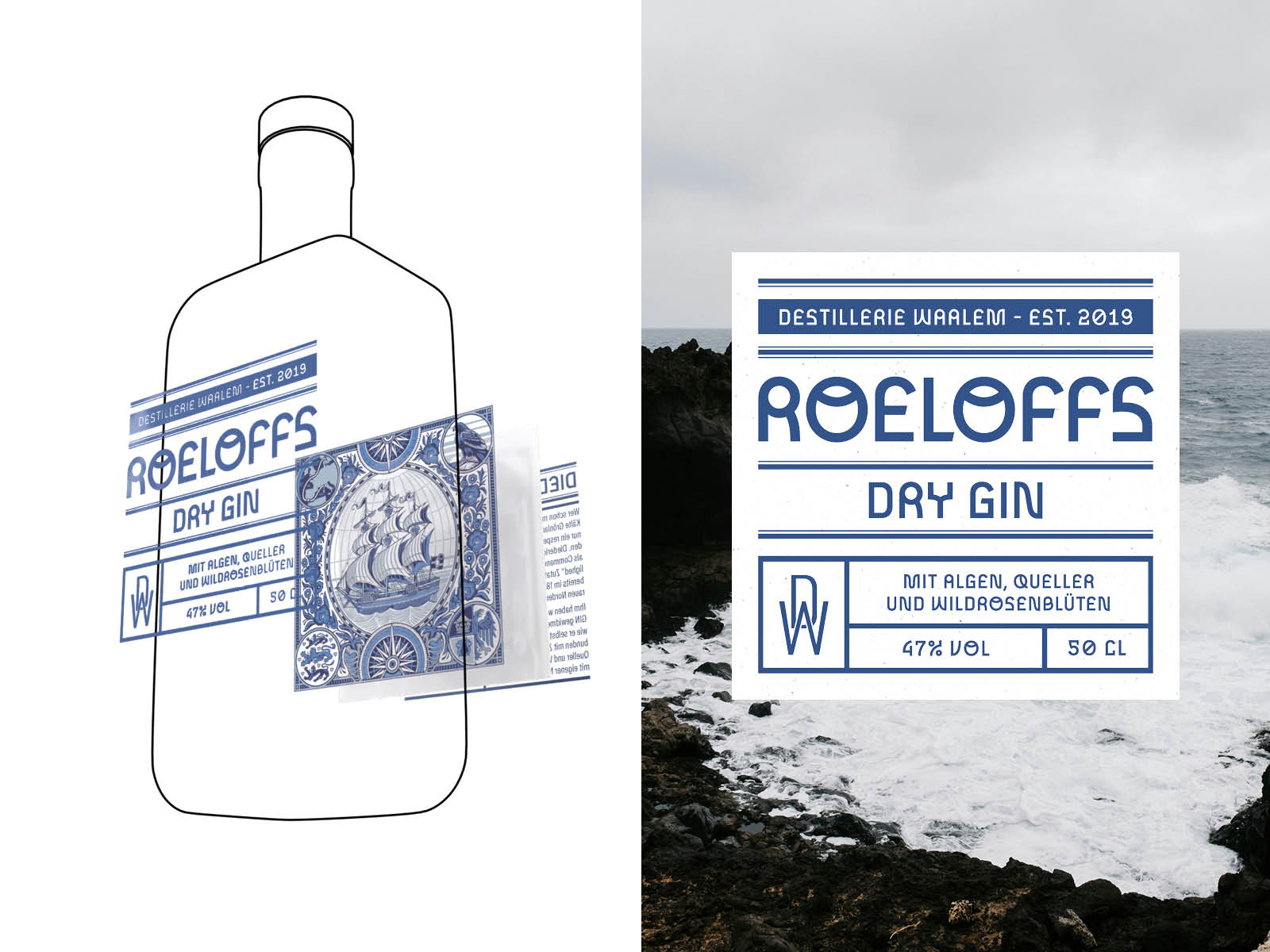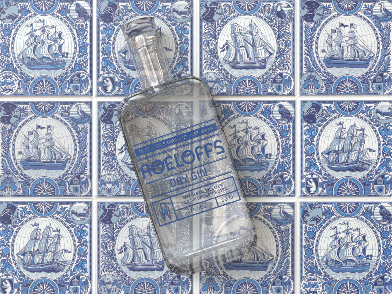 Das Design folgt einem zweifarbigen Konzept im Stil der Delfter Fliesen, wobei das kräftige Indigo die detaillierten Illustrationen lebendig hervorhebt. Diese erzählen die Geschichte jedes Kommandeurs und seiner Reisen, während nautische Symboliken das Packaging Design harmonisch abrunden. Der direkte Keramikdruck überträgt das haptische Gefühl der Fliese auf subtile Weise und verleiht jeder Flasche eine besondere Tiefe. So entsteht ein Design, das sowohl die Historie als auch die Wertigkeit der Marke zum Leben erweckt.
