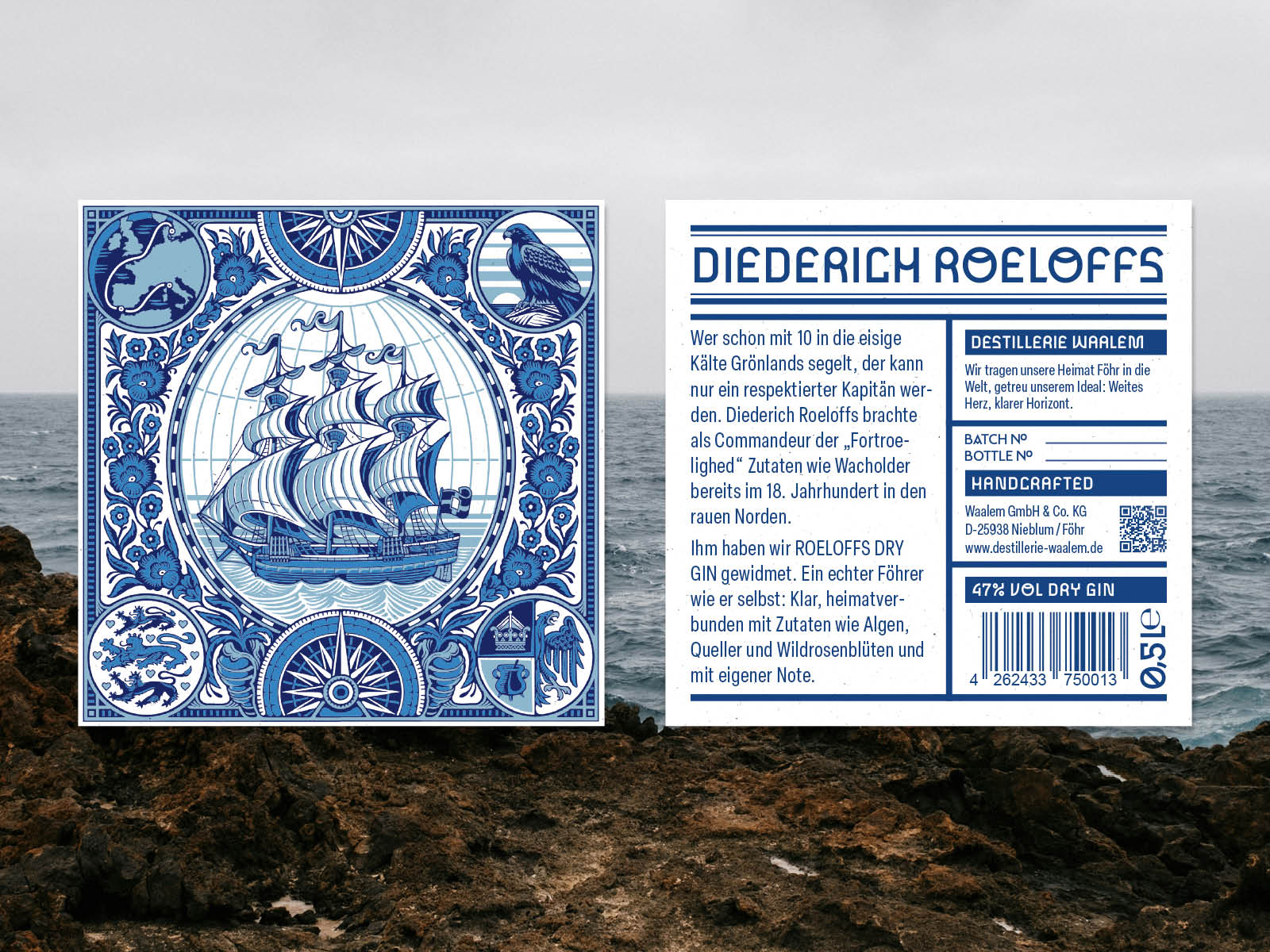 Die vier bekanntesten Kapitäne und ihre Schiffe werden zu Namensgebern ausgewählter Spirituosen und verleihen der Marke ihre einzigartige Identität. Jede Spirituose erzählt die Geschichte eines Commandeurs und seiner Reisen, wodurch die reiche Seefahrertradition Föhrs lebendig bleibt. Inspiriert von den weltberühmten Delfter Fliesen, die Kapitäne seit dem 17. Jahrhundert von ihren Reisen mitbrachten, entsteht eine Verbindung zwischen historischem Erbe und erlesenem Genuss.