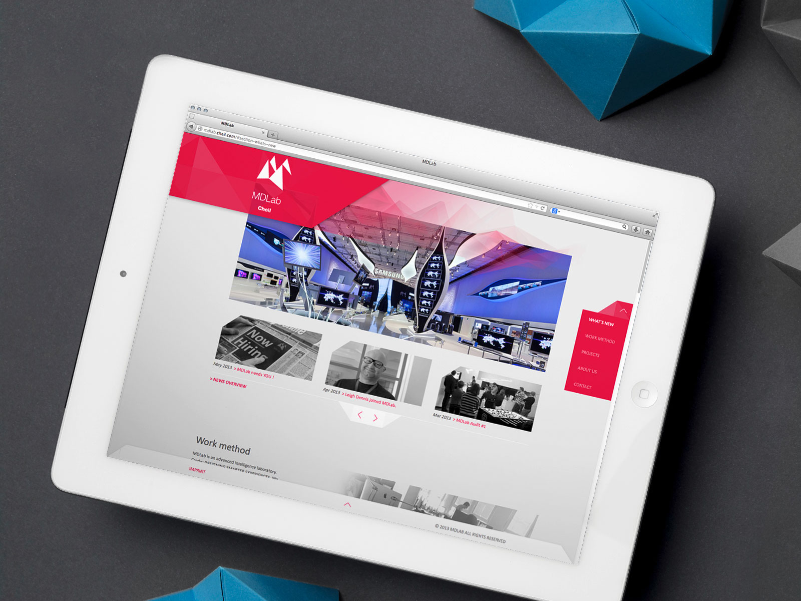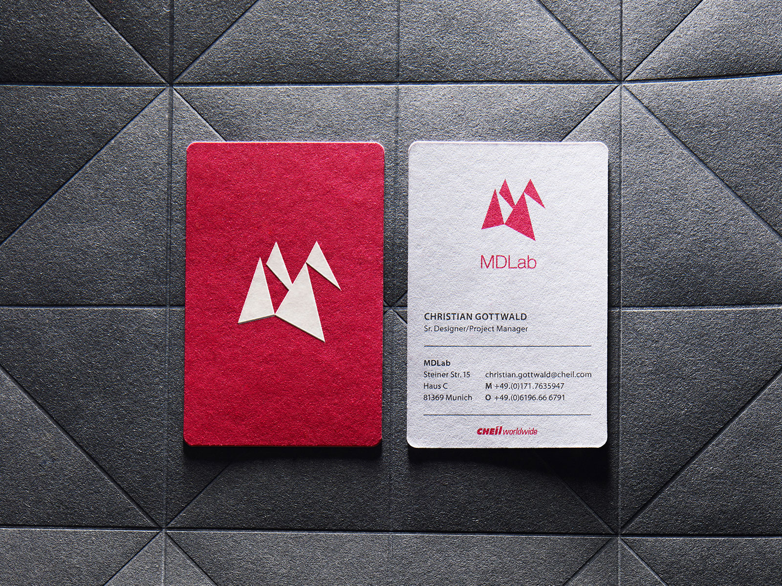 Temporäre Architektur ist das Spezialgebiet des koreanischen Architekturbüros MDlab. Um der innovativen Vielfältigkeit aber auch der Vergänglichkeit mehr Ausdruck im Corporate Design zu verleihen, griffen wir nach einem ebenfalls temporären Element als Basis des Designs: Eine bewegliche Origamipyramide. So steht ein architektonisches Objekt Pate für die Idee des Unternehmens und ist zur gleichen Zeit ein ikonisches „M“ und damit Initial des Architekturbüros.