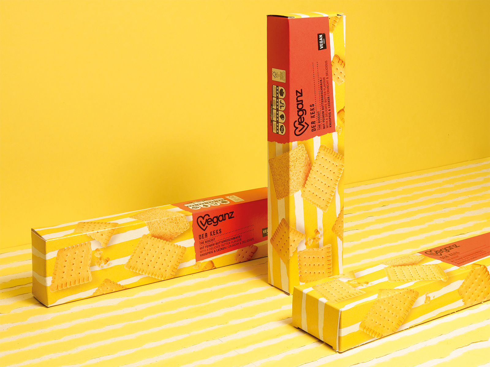 Für „vegan“ gab es, als wir anfingen, noch keinen klar definierten Design-Code. Das Ziel war, die Marke leicht, tasty, persönlich, nahbar mit Blick auf die Details für einen starken Shelf-Impact im europäischen Markt zu designen. So entstand ein zeitgemäßes Design mit viel Handmade-Charakter und Unverwechselbarkeit für den Pionier im Markt der pflanzlichen Lebensmittel. Neu entwickelte Codes kombinierte Studio Oeding mit Bekanntem aus der Organic-Kategorie, um die üblichen Pfade zu verlassen. So entwickelte Veganz eine starke und lebensbejahende Markenpersönlichkeit.