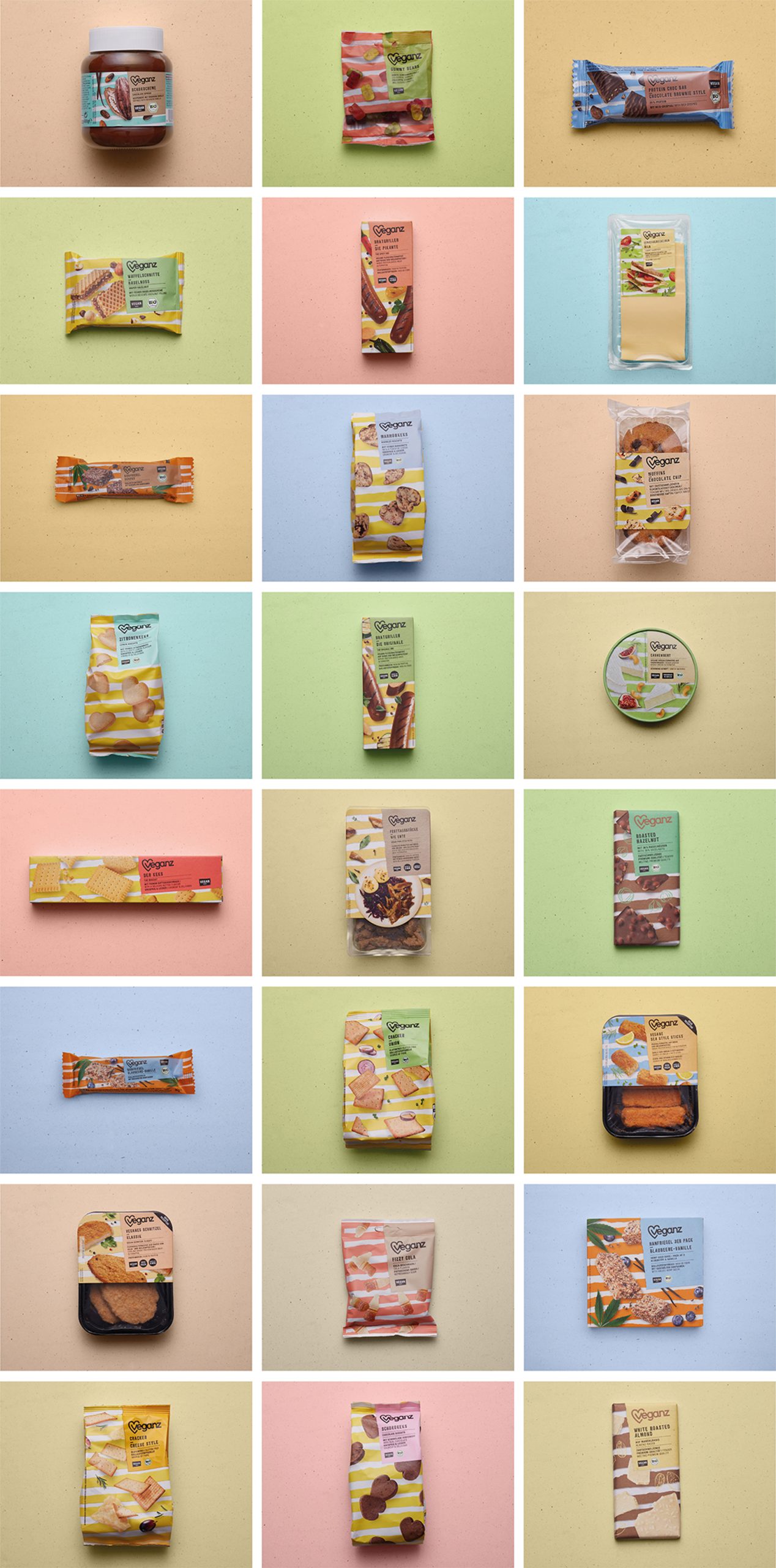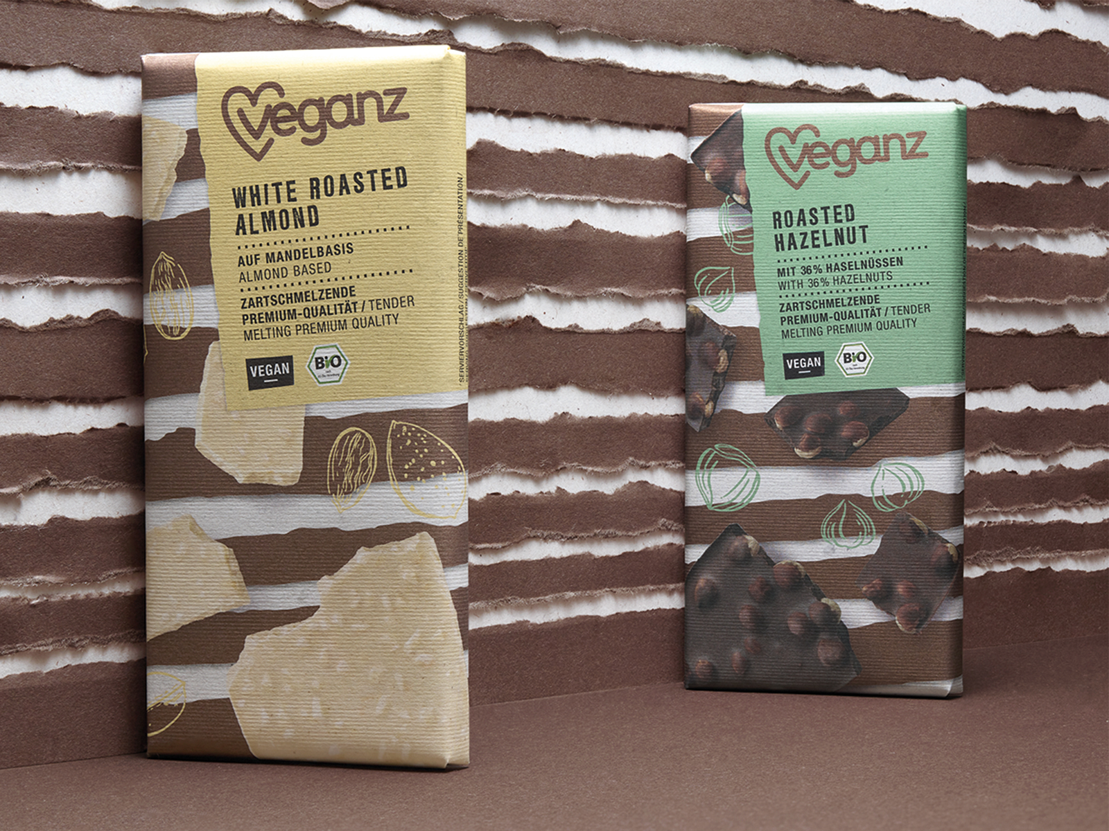 Im Fokus des Designrelaunchs der Marke Veganz stehen die über 160 Produkte inkl. aller Kommunikationsmaßnahmen und -kanäle. Das Ende 2018 entwickelte neue Corporate Design wurde stufenweise auf das Packaging Design der bestehenden Produkte und bei allen Neuentwicklungen umgesetzt. Bis Ende 2020 werden alle Packaging Designs der Veganz-Produkte rollierend auf das neue Corporate Design umgestellt.