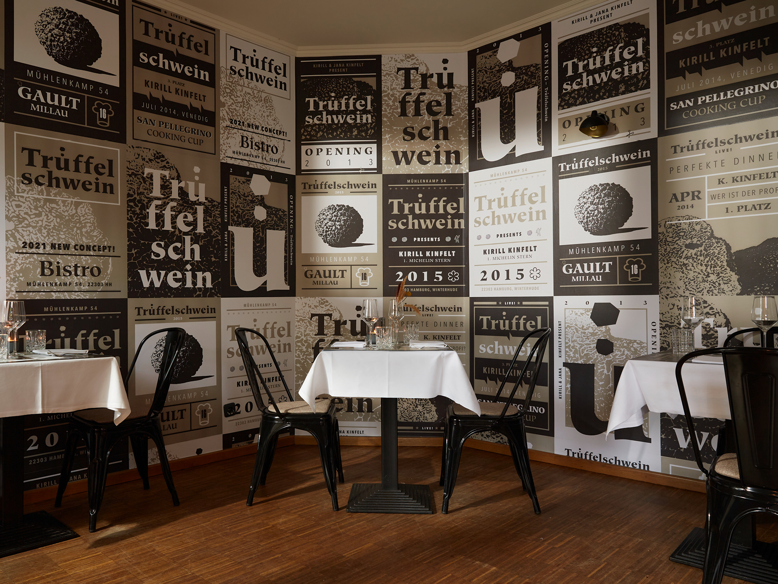 Studio Oeding created the corporate design concept a second time. The corporate design of Kirill Kinfelt’s previous Michelin-starred restaurant “Trüffelschwein” was also created by the design studio team in 2013.