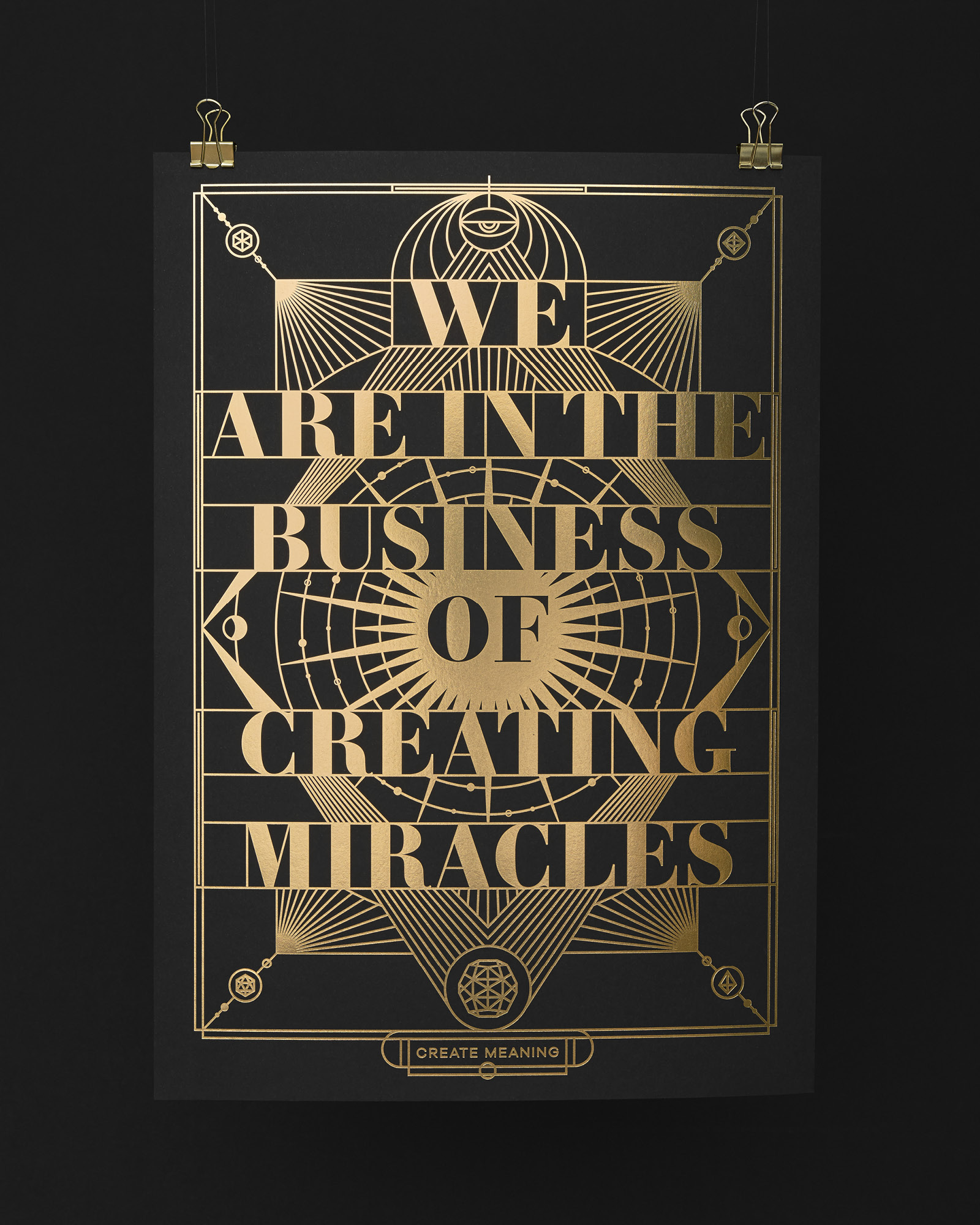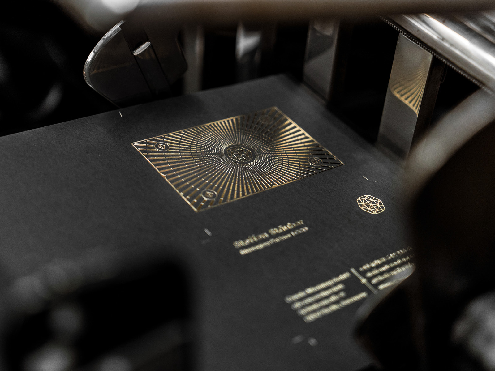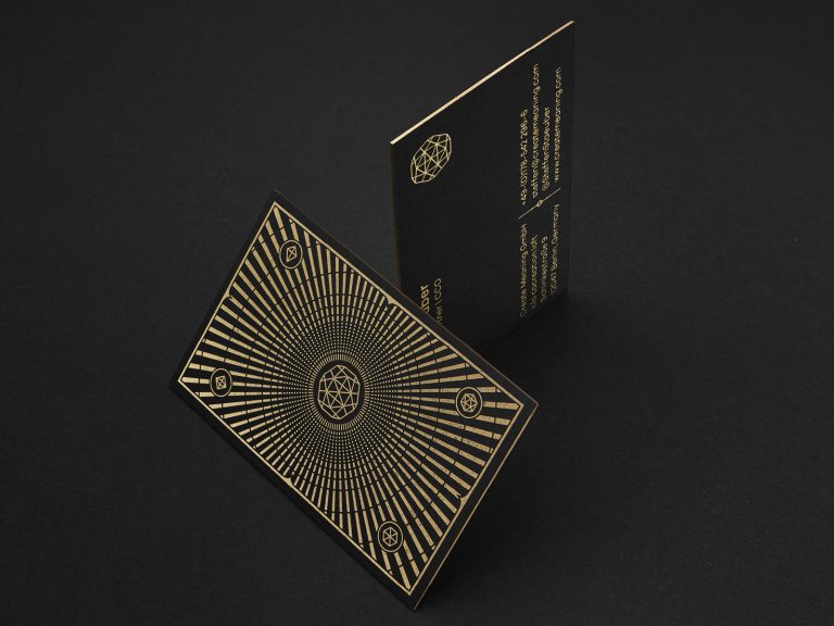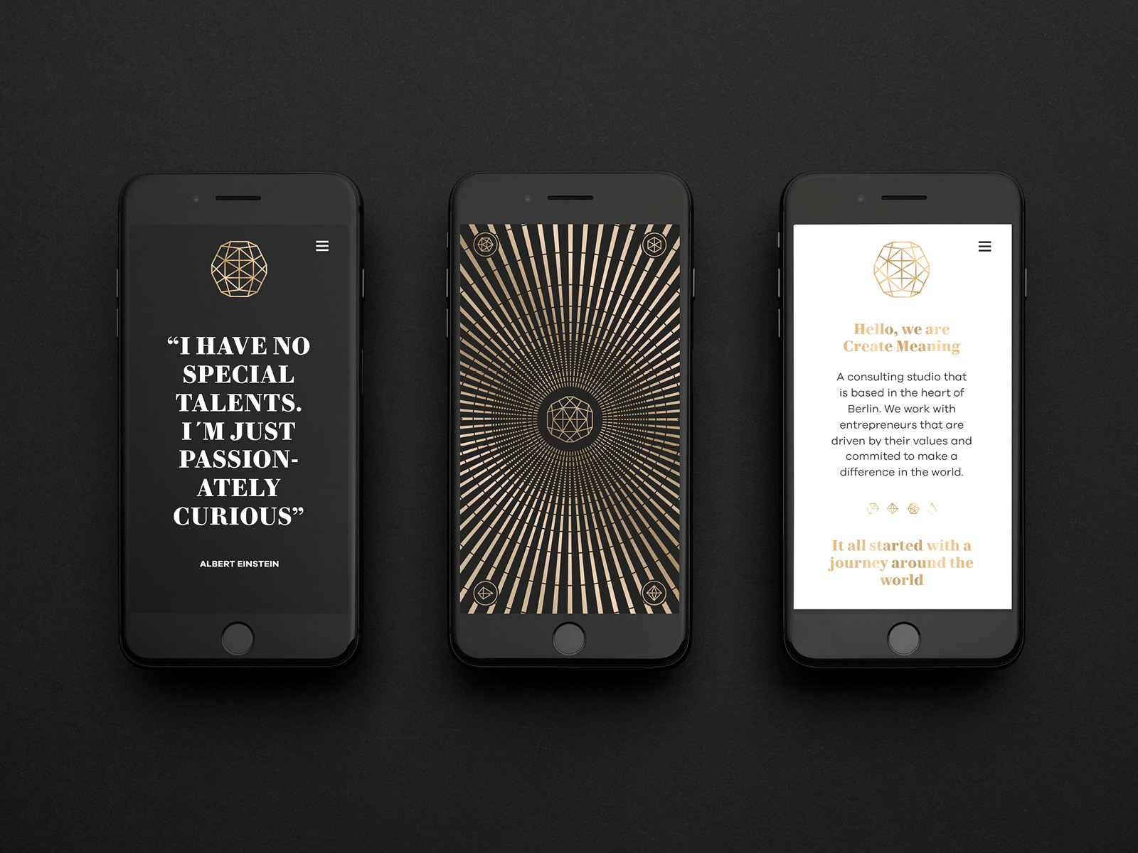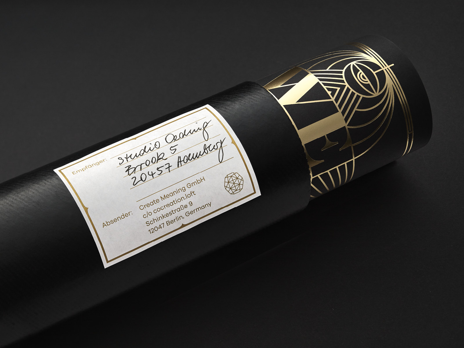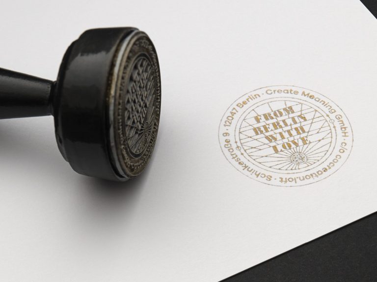 The logo of Create Meaning is a dodecahedron and, with its 12 faces, symbolizes the multidimensionality of an entrepreneur’s decision as well as the complexity of its impact. The consulting firm’s work is a mixture of science and esotericism, which is clearly reflected in the corporate design and emphasizes the high value and quality standards of the founder in a special way. The gold symbolizes the sun and the black stands for the universe. The finishing touches, such as golden hot foil stamping and the production of the stationery on a traditional Heidelberg printing press that is over 100 years old, are also special.