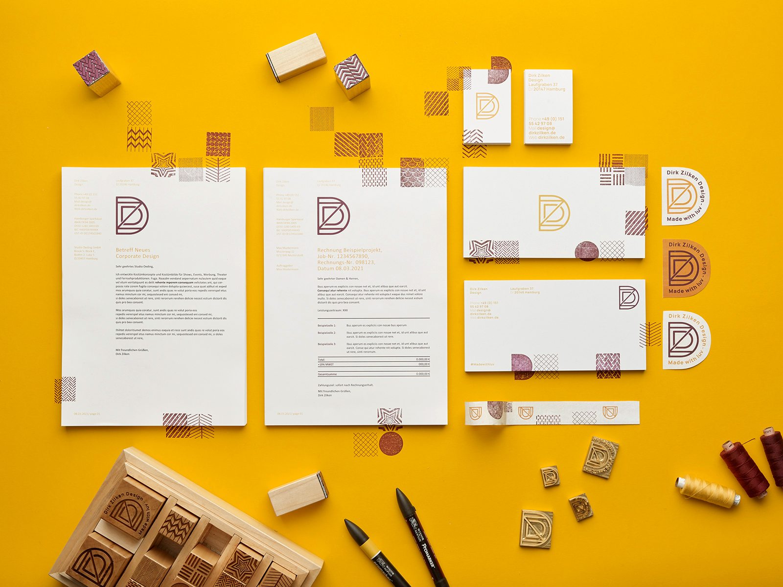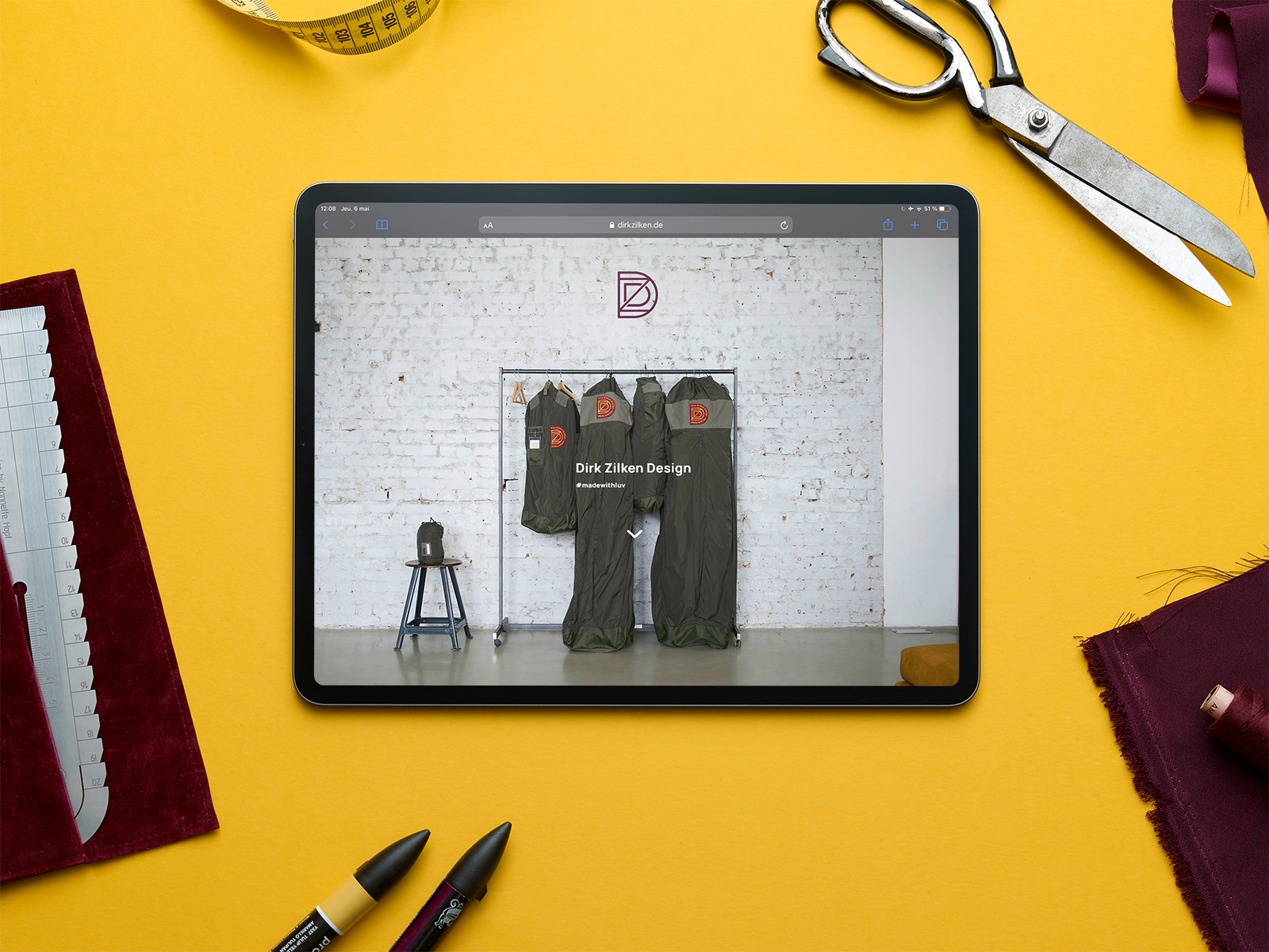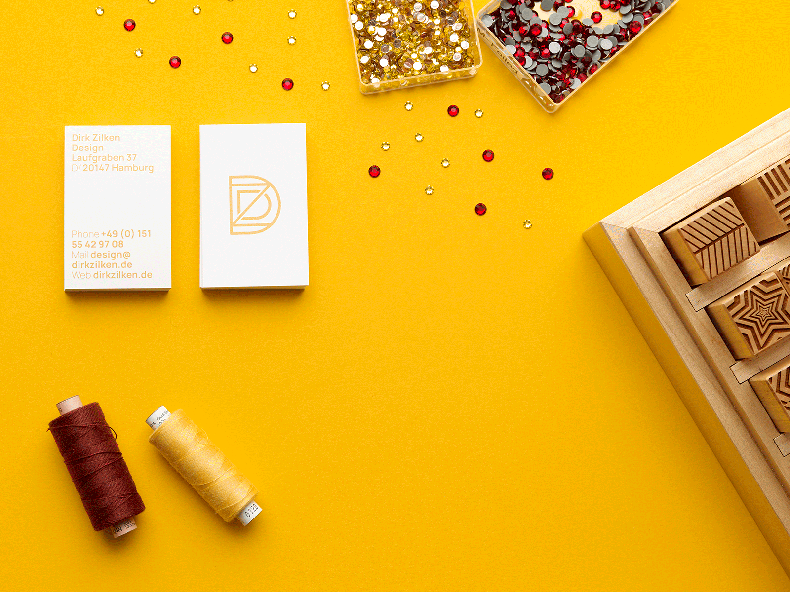 We created the corporate design including a monogram and used this as the design foundation for the stationary and shipping solutions, the unique interface design and the company presentation. The basic idea for the design concept was to create a framing in which there was plenty of room for Dirk’s personality and individuality. Textile structures, patterns and textures are the basis for everything Dirk designs. We therefore incorporated his preferred materials and fabrics into the corporate design concept. We abstracted these and designed a stamp box with 16 different wooden stamps including a star and a newly developed monogram in a handmade box.