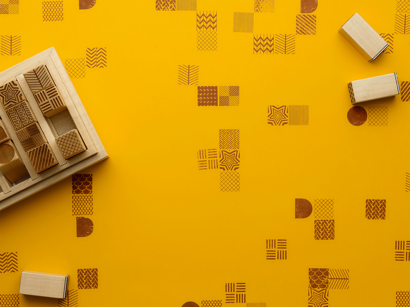 The color concept of the corporate design is based on warm tones. The building blocks of the modular concept reflect individual aspects of his personality and the individual combination variants make each stamp image unique.