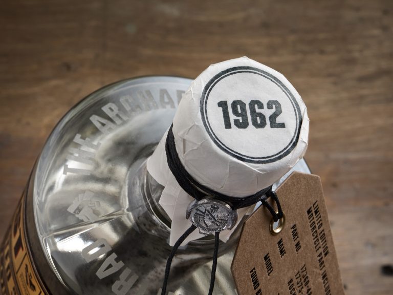 Each bottle tells the breathtaking story of the part’s origin on its wrapping paper. Every element of the handcrafted packaging is made from colors and materials that were already in use in the 1930s and 1940s.