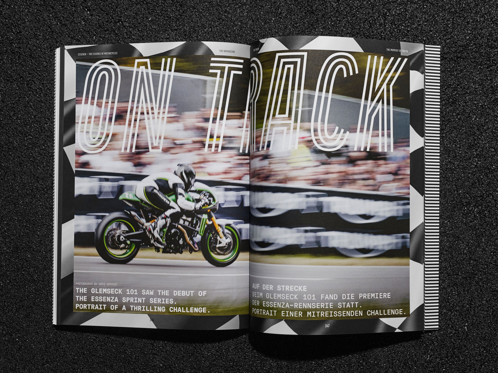 The innovative motorcycle sprint series, launched in 2016 with its own design competition, brought international motorcycle manufacturers and riders to the racetrack. Sixteen racing teams compete in a knockout system. The foundation of the logo consists of 16 lines, symbolizing the 16 sprint participants. The “E” represents the starting lines for the two competitors in each race. The corporate design visualizes speed across all its media.