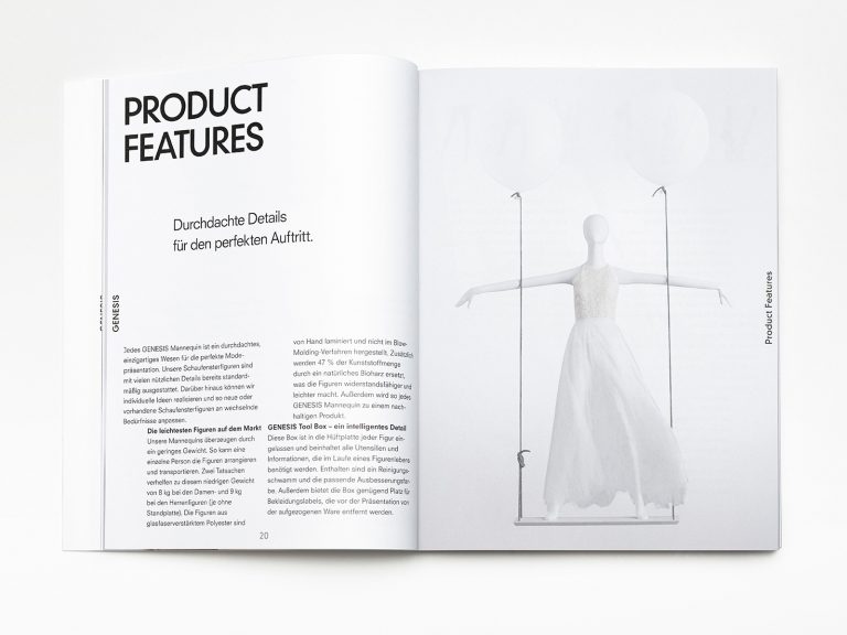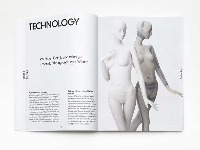 GENESIS MANNEQUINS is a passionately managed international company with outstanding technical expertise, extraordinary creativity, and unparalleled precision. These qualities, along with the values of this top player in the fashion industry and leading manufacturer of display mannequins, are reflected in the editorial concept & design as well as the interface design.