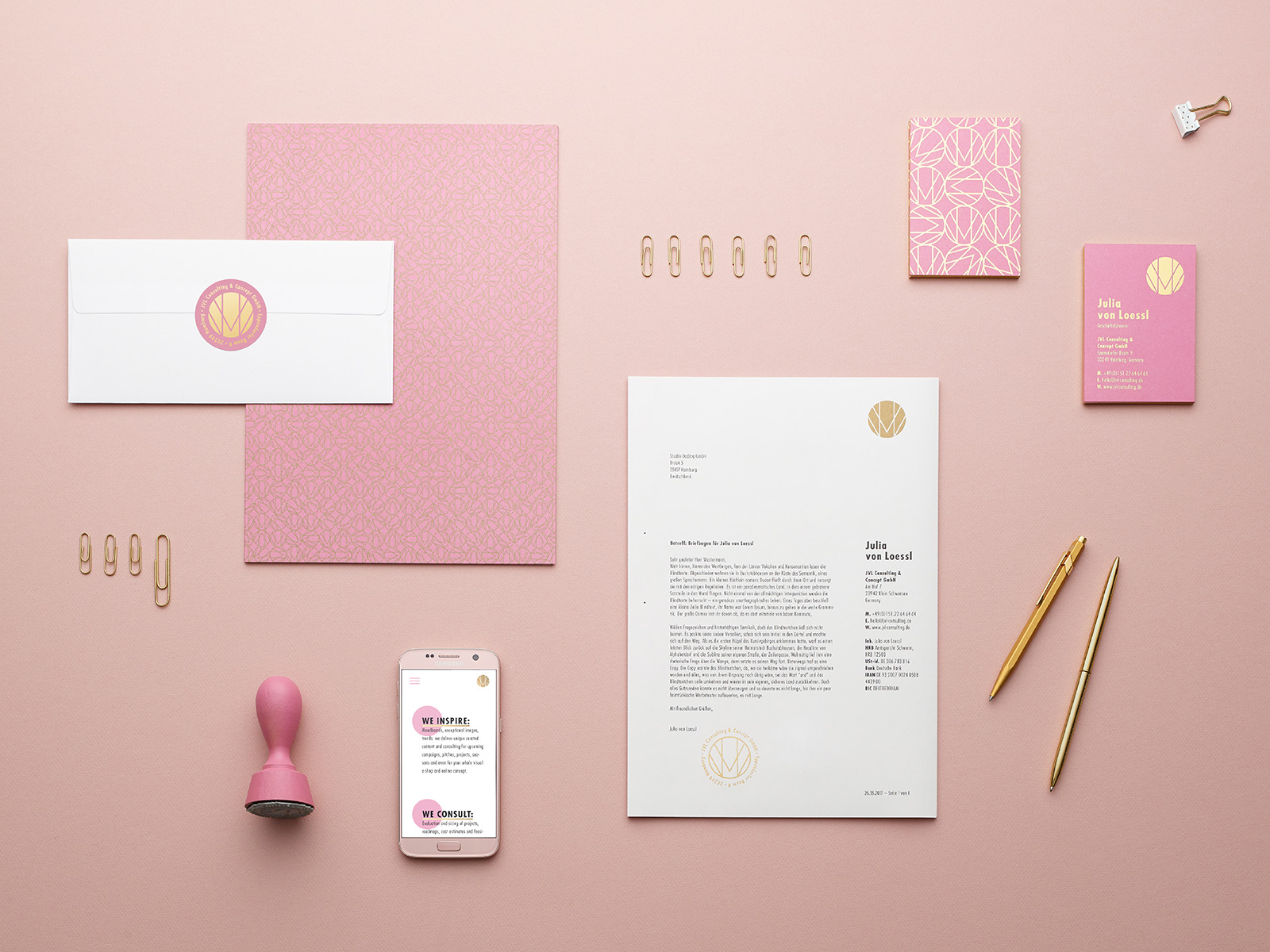 Decades in media management have fostered expertise and a sharp eye for targeted solutions in various business situations. Julia von Loessl is a multi-talented professional with the ability to view challenges from all perspectives, developing and implementing clear solutions. Studio Oeding’s design concept reflects her personality and approach—multidimensionality and confidence, combined with vibrancy and a vast network for executing solutions, were the key drivers behind the corporate and logo design.