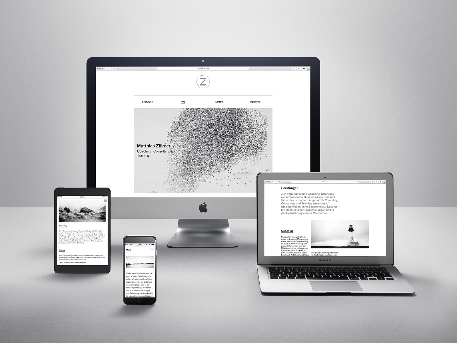 Zillmer has evolved into a personal brand, and we developed a corporate design—including various media—to visually express his philosophy. The design reflects his core values: quality, security, and trust, ensuring that his approach and credibility are clearly communicated.