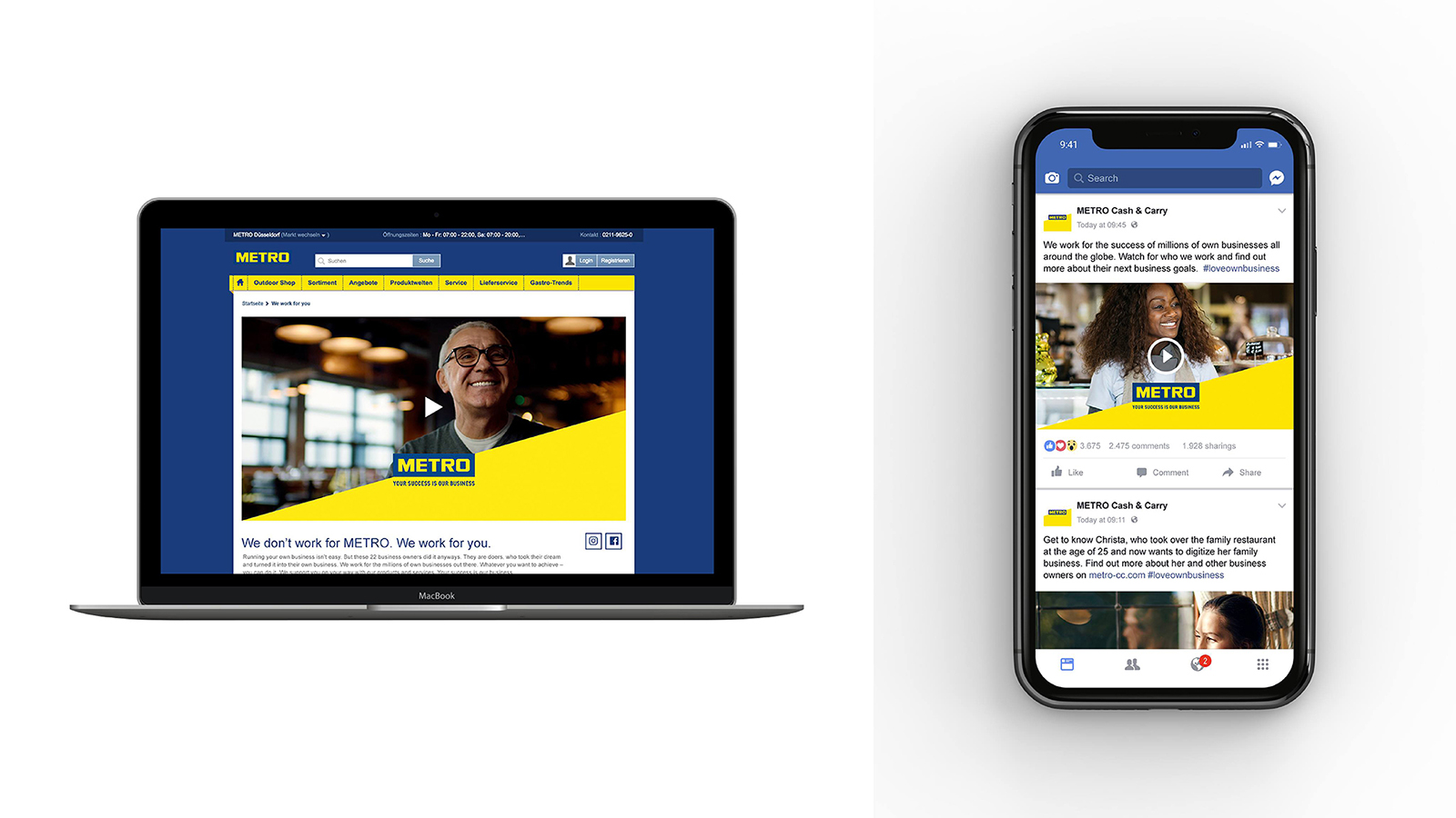 METRO is a well-known brand and one of the largest wholesalers. According to research, B2B customers can achieve up to 16% higher profits. This insight led to the creation of the claim “Your success is our business” and an advertising campaign by Serviceplan Campaign.