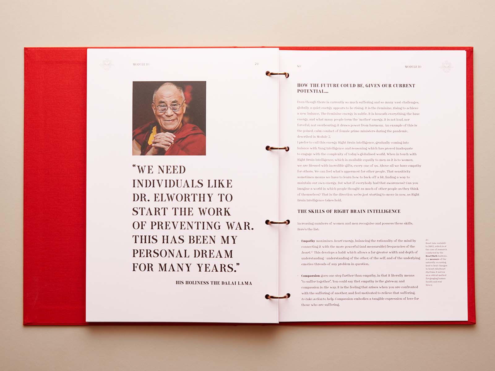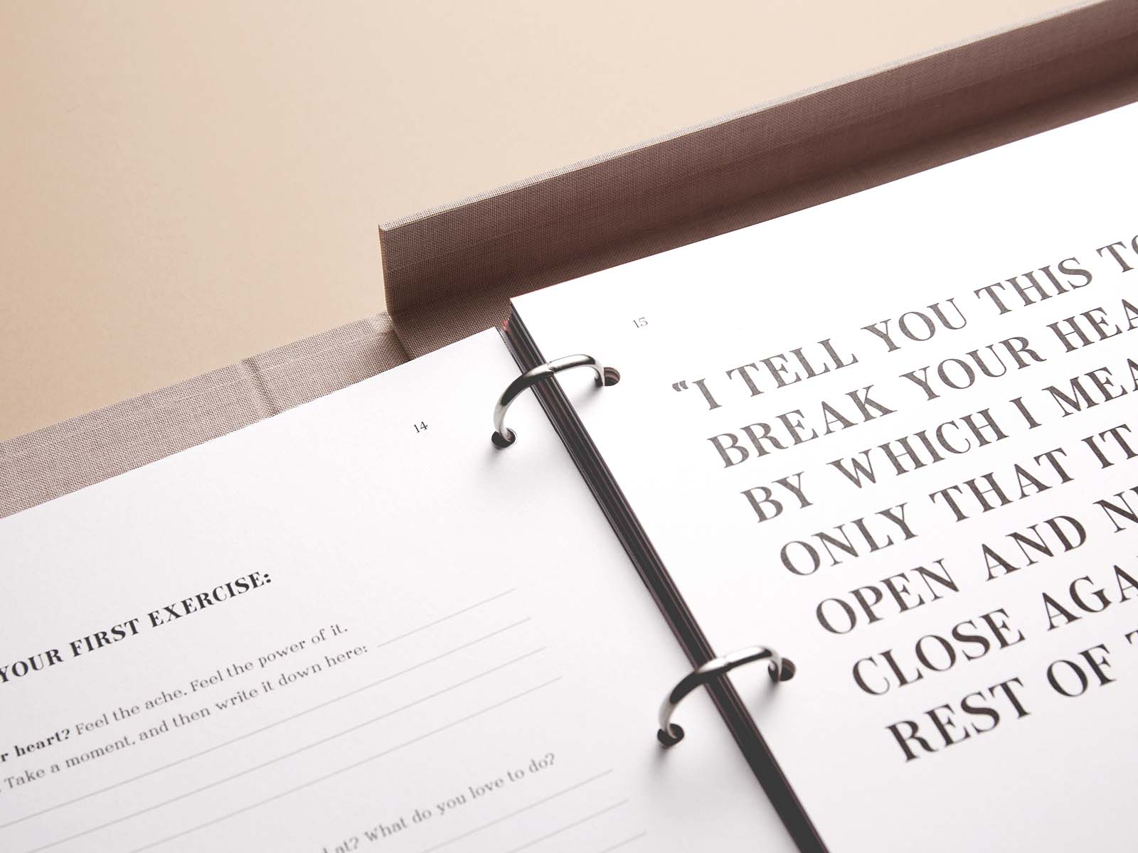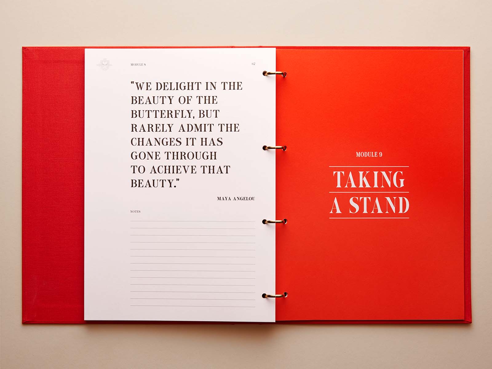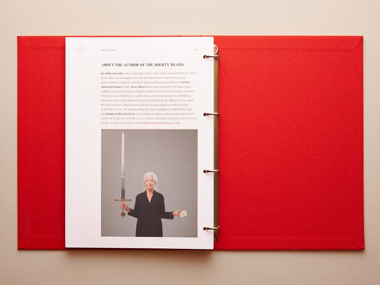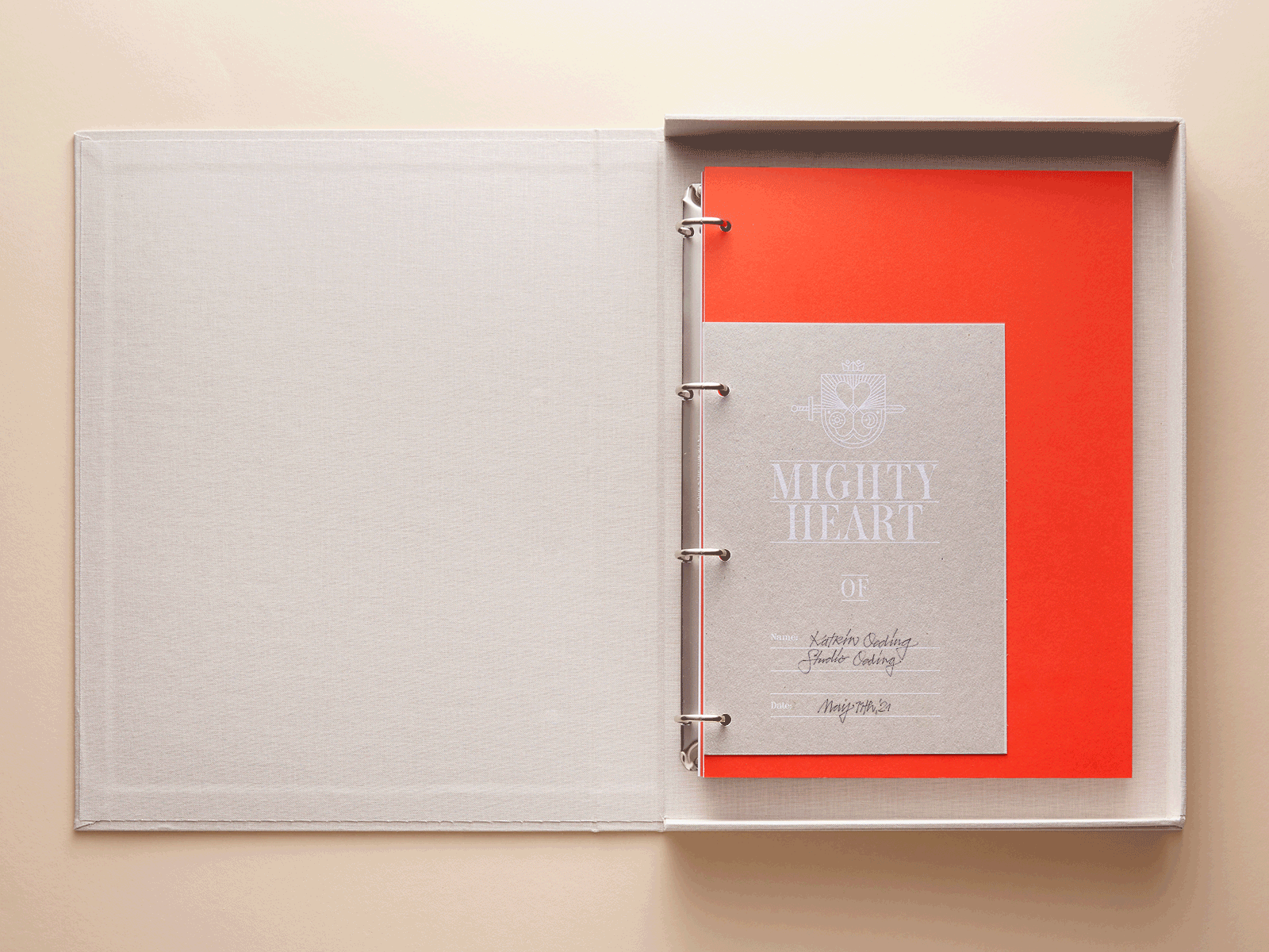 To create the corporate design, we took inspiration from the story of the Mighty Heart, the King Arthur story, which is Scilla’s favourite fairy tale. The design is inspired by elements from centuries past. We created the design concept including the logo, letterhead and exercise book for the mentoring programme. The Mighty Heart folder becomes a companion to the programme and, over time, a change bible or personal guide. It is a high quality item that supports and documents life change.