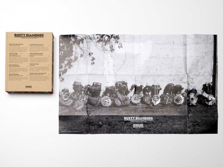 After analyzing Uwe’s motorcycle discoveries from 1979 to 1989, the concept was clear: it would be an entertaining and stylish documentary that would appeal to motorcycle enthusiasts, globetrotters and lovers of special stories alike. The book reflects the values of the EHINGER KRAFTRAD brand in every respect: purism at the highest technical and qualitative level.