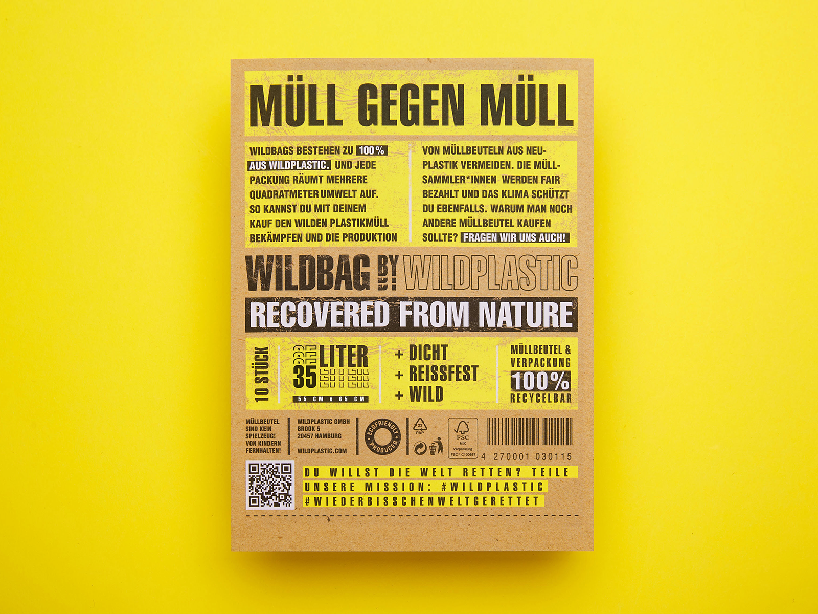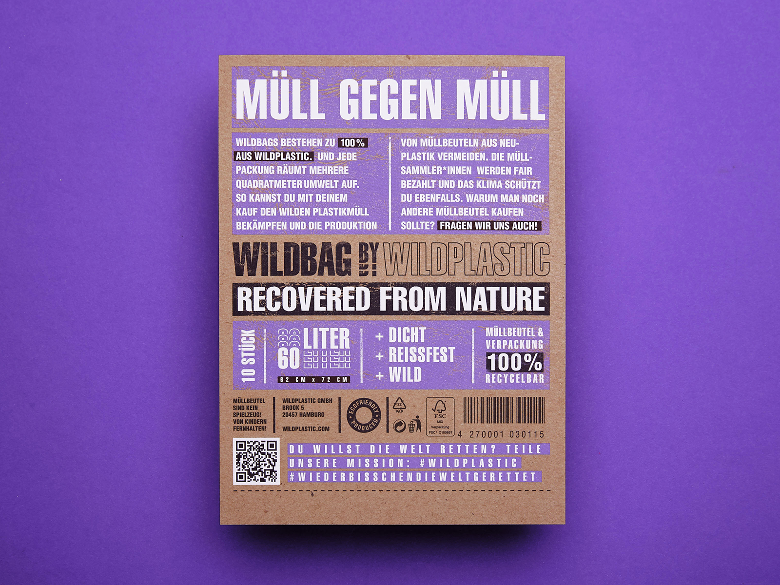 WILDPLASTIC fights against plastic pollution of the environment. WILDPLASTIC is not only our brand name, it is also the new name for the plastic that we remove from nature together with certified organizations and collectors worldwide. This happens in countries without their own recycling structures and we ensure that a unique new recyclable material is created from it. The first product is the WILDBAG, which we use to clean up the world a second time.