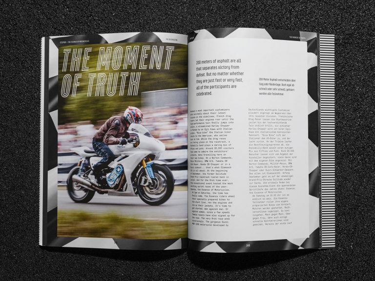 Die 2016 gestartete innovative Motorrad-Sprintserie mit eigenem Designwettbewerb brachte internationale Motorradhersteller und Fahrer auf die Rennstrecke. 16 Rennteams treten im K.O.-System gegeneinander an. Die Basis des Logos besteht aus 16 Linien als Analogie zu den 16 Teilnehmern der Sprints. Das E symbolisiert die Startlinien für die beiden Teilnehmer eines Rennens. Das Corporate Design visualisiert Geschwindigkeit in all seinen Medien. Entwickelt wurde das Logodesign, customized Typedesigns, die Geschäftsausstattung, das Bookazine, verschiedene Merchandising Produkte, das Exhibition Design, das responsive Interface Design und die gesamte Social Media Kommunikation.