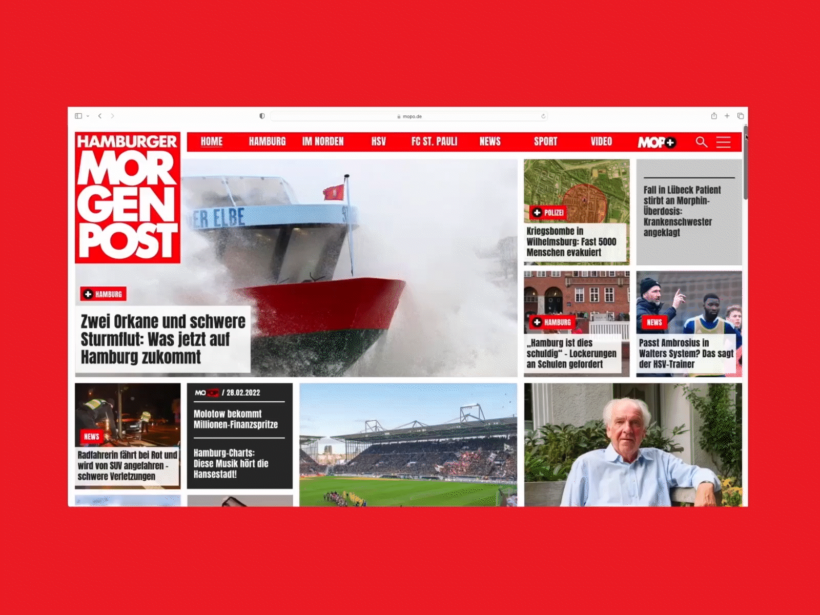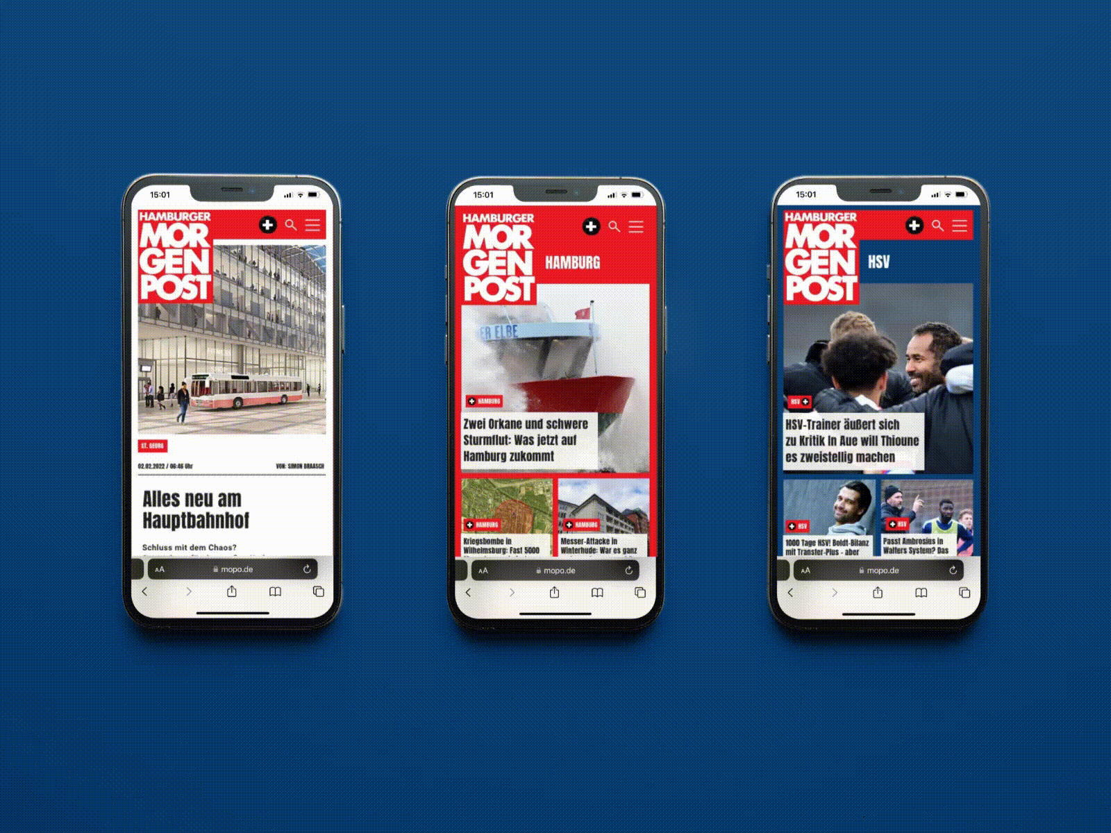 Eine der meistgelesenen Tageszeitungen in Hamburg, überzeugte schon offline mit dem handlichen Tabloidformat und war einer der Vorreiter im Hamburger Medienmarkt, um die Inhalte knackig zu präsentieren und die starke Verankerung in der Hansestadt konstant zu betonen. Die digitalen Formate der Hamburger Morgenpost bieten darüber hinaus 24/7 regionale und überregionale News.