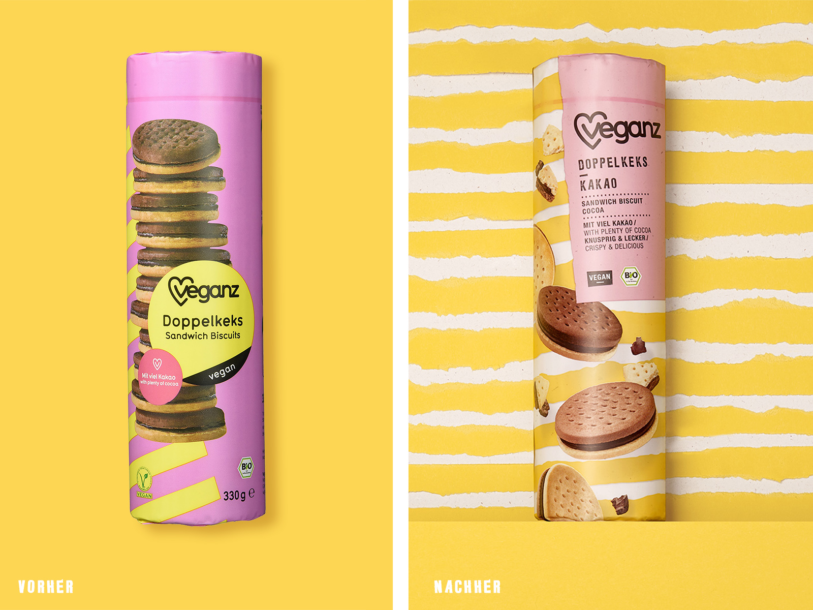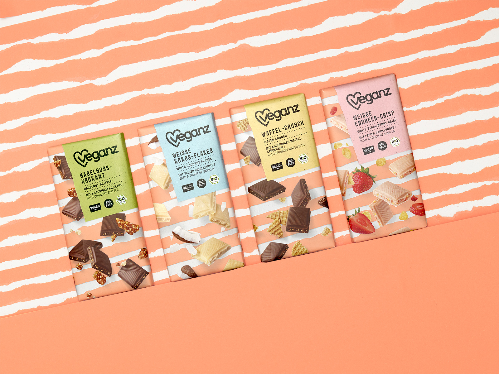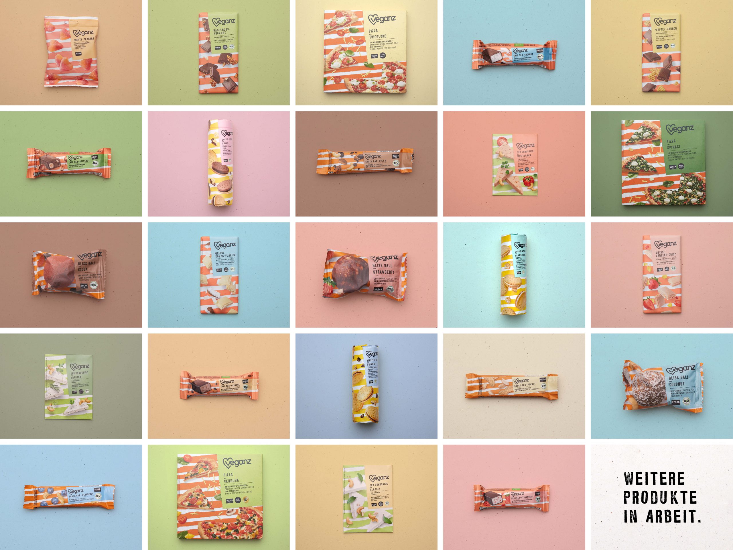 Im Fokus des Designrelaunchs der Marke Veganz stehen die über 160 Produkte inkl. aller Kommunikationsmaßnahmen und -kanäle. Das Ende 2018 entwickelte neue Corporate Design wurde stufenweise auf das Packaging Design der bestehenden Produkte und bei allen Neuentwicklungen umgesetzt. Bis Ende 2020 werden alle Packaging Designs der Veganz-Produkte rollierend auf das neue Corporate Design umgestellt.